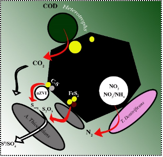 基于以上煤炭生物脱硫效果差以及国家大力倡导开发碳中和技术的背景下,课题组设计合成了一种创新型的生物系统用于高效煤炭脱硫,并可同时实现CO2的快速利用。该系统以负载纳米零价铁(nZVI)的功能性聚氨酯(FPUF)复合材料作为生物载体,用以同时生长自养型氧化硫硫杆菌、氧化亚铁硫杆菌和脱氮硫杆菌(TAC),并将其与活性污泥(ASP)共同培养形成共生生物系统,系统以CO2作为主要碳源。实验室煤炭脱硫实验表明,该生物系统可实现S (43.3 kg/m3/day),Fe (20 kg/m3/day),NH4+ (0.08 kg/m3/day),NO3– (0.05 kg/m3/day),PO43- (0.01 kg/m3/day)等多种污染物的同步去除,CO2捕集量可达54 kg/m3/day,最高煤炭脱硫率达到90%。且随着脱硫率提升,CO2捕集量随之增加,证明了该技术的双重作用。基于本研究估算该生物系统处理1 kg煤可脱除180 g S,并利用4.5 g CO2,具有良好的应用前景,可为煤炭生物脱硫和CO2捕集利用提供新途径。
