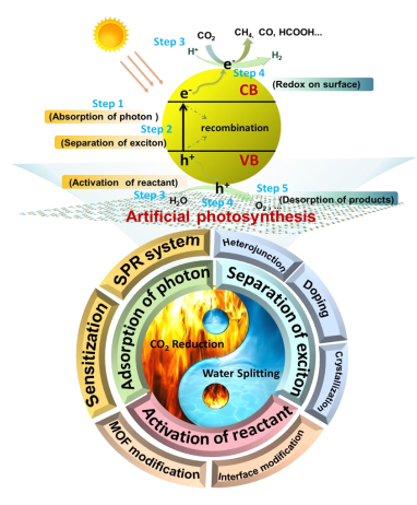 随着工业化进程的加剧及人口的不断增长,能源危机和环境污染成为全球性问题。探索清洁可再生能源的生产及CO2高值化利用对于缓解能源危机、改善环境状况以及促进碳中和具有重要意义。受植物光合作用的启发,以太阳光为驱动力,在半导体催化剂的作用下,实现光催化CO2转化(CRR)及光解水制氢(HER)正在逐步成为具有巨大发展潜力的策略。如何合理地设计高效的半导体光催化剂已成为相关领域的一个研究热点(图1)。