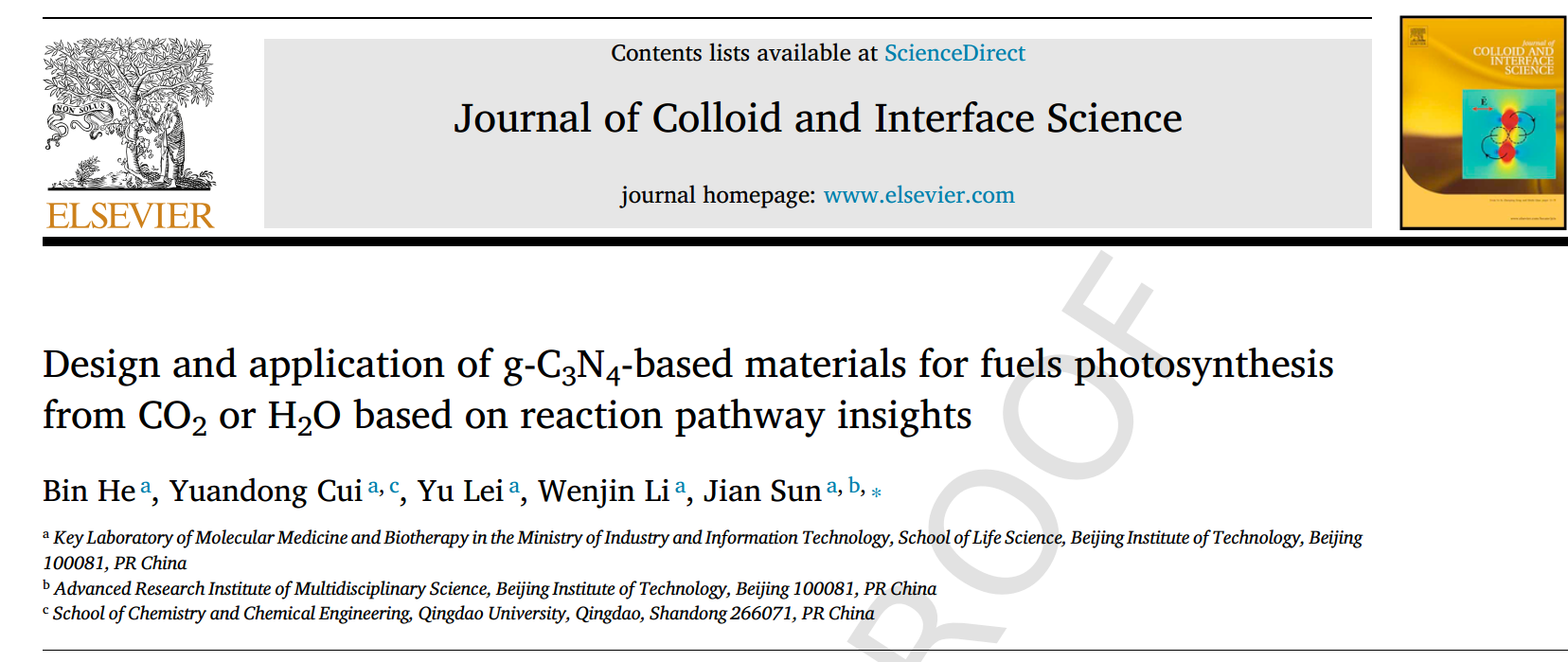 论文详情:Bin He, Yuandong Cui, Yu Lei, Wenjin Li, Jian Sun, Design and Application of g-C3N4-based Materials for Fuels Photosynthesis from CO2 or H2O Based on Reaction Pathway Insights. DOI:10.1016/j.jcis.2022.09.114.