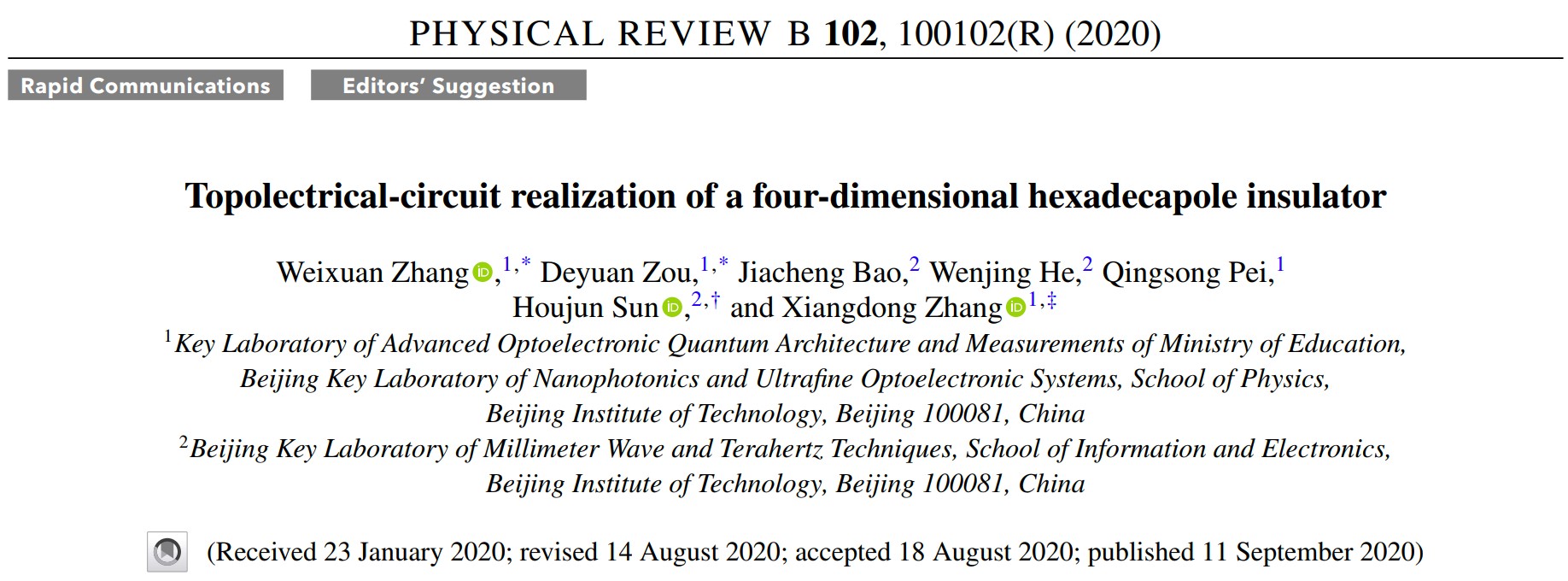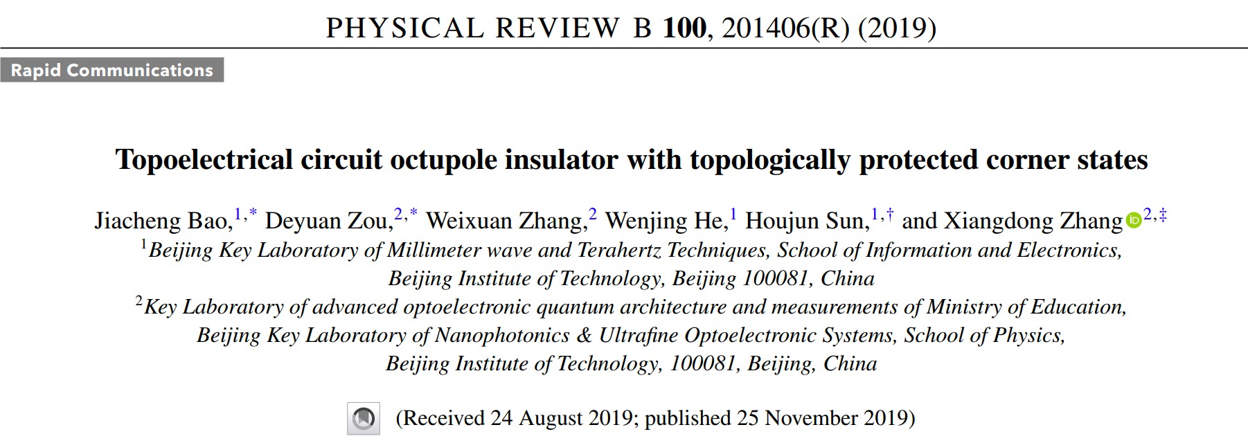北理工在拓扑电路和高阶拓扑态研究方面取得重要进展