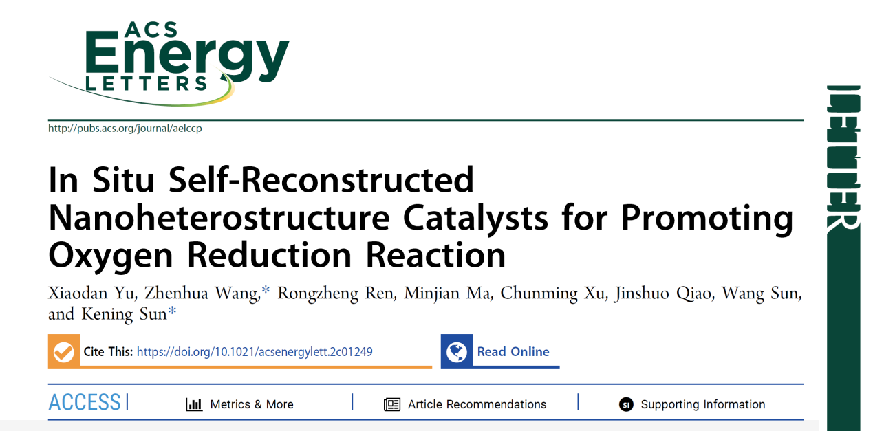 近日,永利yl23411化学与化工学院王振华教授和孙克宁教授团队在固体氧化物燃料电池氧电极材料设计方面取得新进展。相关研究成果以“In Situ Self-Reconstructed Nanoheterostructure Catalysts for Promoting Oxygen Reduction Reaction”为题发表在美国化学会能源旗舰期刊ACS Energy Letters上,并被遴选为封面文章。永利yl23411为唯一通讯单位,化学与化工学院王振华教授和孙克宁教授为共同通讯作者,化学与化工学院2021级博士研究生于晓丹为论文的第一作者。