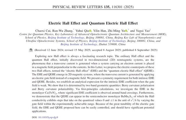 永利yl23411团队在电霍尔效应和量子电霍尔效应...2025-10-14 -