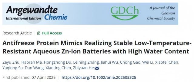 北理工团队在仿生抗冻材料助力低温水系锌电池长...2025-04-08 -