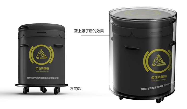 如何非接触式处置爆炸物已成为世界各国防爆反恐的难题,但目前常用的防爆装置在重量、可移动性和防护能力方面存在应用瓶颈,亟需研制新型轻质便捷、强防护能力和无附带伤害的非接触式防爆装备。由永利yl23411爆炸科学与技术国家重点实验室研制的柔性轻质复合防爆装置,采用特殊液体和高性能纤维材料等构成的柔性轻质复合结构,可基于波阻抗匹配、惯性耗能和大面积整体变形等原理,高效吸收爆炸冲击波和破片的联合冲击能量。柔性轻质复合防爆装置技术可应用于防爆桶、防爆箱、防爆围栏、防爆挡墙等多种类新一代抗爆防爆产品或装备开发。其中该技术应用于柔性复合防爆桶,可防护1kg以上TNT爆炸物,装置轻质便携(重量减少80%)且无附带伤害。柔性复合防爆桶作为本技术的第一款产品应用,已通过公安部检测,即将作为新一代防爆反恐创新成果遴选试用后在全国推广,可广泛应用于机场、高铁、地铁、广场和会议中心等公共场所的安全防护,具有广阔的市场应用前景和积极的社会示范效应。