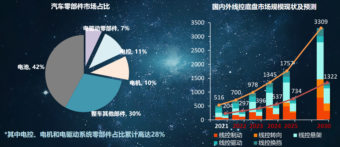 智能汽车已成为全球汽车产业发展的战略方向,预计2025年,实现有条件自动驾驶的智能汽车将达到规模化生产,且乘用车线控底盘国内市场规模达600亿元,年均复合增长率达25.9%。2035到2050年,中国标准智能汽车体系全面建成、更加完善。