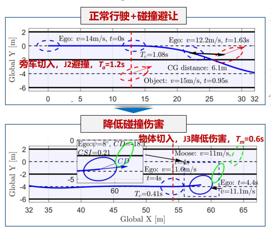 ②多目标实时优化:结合车辆路径规划-跟踪一体化控制架构,实现不同控制目标下前轮转角、电机转矩、制动力矩优化分配,在≤50ms周期内满足跟踪精度、主动避撞、碰撞伤害最小化多目标需求;