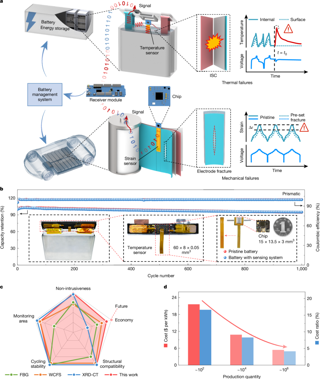 电池单体无损植入式智能传感系统一、成果简介 近年来,能源电池技术发展迅猛,但安全问题日益凸显。据统计,2010-2024年间,全球共报告近万起锂离子电池安全事故,... -