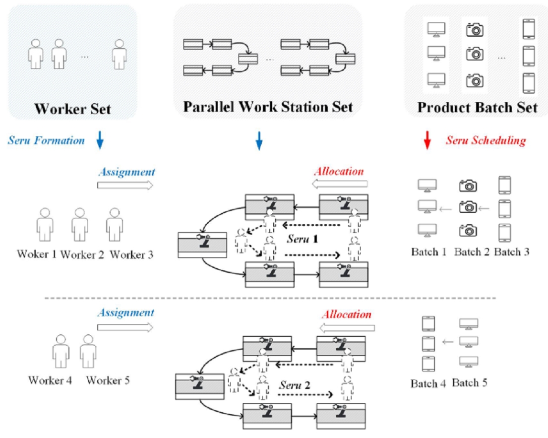 赛汝生产方式是基于多技能化工人和简单、易移动的设备等柔性资源,通过对人员、设备和产品的合理组织来实现高效率和高柔性的一种面向装配生产系统的新型生产组织模式。赛汝生产方式由流水装配线生产方式经工序的重新分工以及生产设备的简化演变而来,其采用可移动的工作台、简单的设备和手工工具取代了流水装配线上的传送带和固定专用的自动化机器设备,使其能够快速、频繁地进行建造、改装、拆除和重组、能有效应对市场环境的变化。相比之下,传统的装配线依赖于大规模的生产过程,通常要求工人专注于单一的任务。在快速变化的市场环境中,缺乏灵活性的装配线生产方式已经不能满足多样化的客户需求。作为一种电子装配制造企业生产现场的新型生产管理方式,赛汝生产方式兼具高效、灵活以及快速响应的特点,被企业广泛采纳以提高生产的适应性,以降低市场需求波动带来的负面影响。