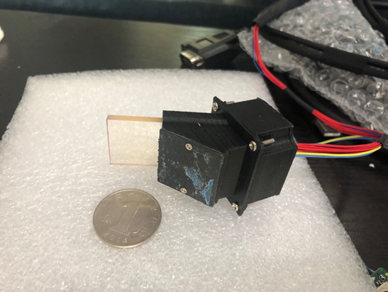 本项目发明了一种基于全息衍射光学元件的消色差的波导显示系统。该系统包括输入耦合器、波导、输出耦合器,当彩色光线通过准直透镜后照射到作为输入耦合器的透射式平面光栅时,平面光栅发挥色散特性,将光色三成不同颜色的光波按照不同的角度进入到波导中,然后光继续在波导中传播,当光传播到作为输出耦合器的反射式体积光栅时,光波又被体积光栅调制,使发生色散的光波以同一方向反射出波导,进入到人的眼睛,使得人眼可以看到彩色的图像,从而达到消除色差的目的。