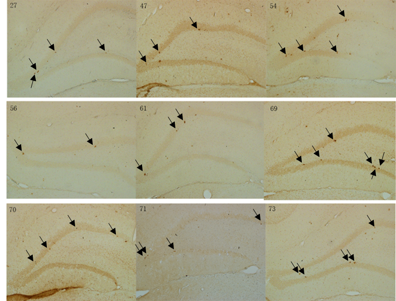 图1 不同化合物对于成年大鼠海马神经发生的影响部分结果展示(图中黑色点,为海马神经发生阳性点)