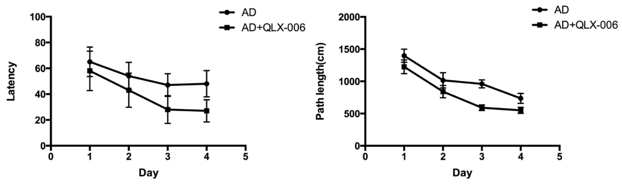 图3 化合物减少了AD模型动物的水迷宫实验潜伏和寻找水中休息平台的时间