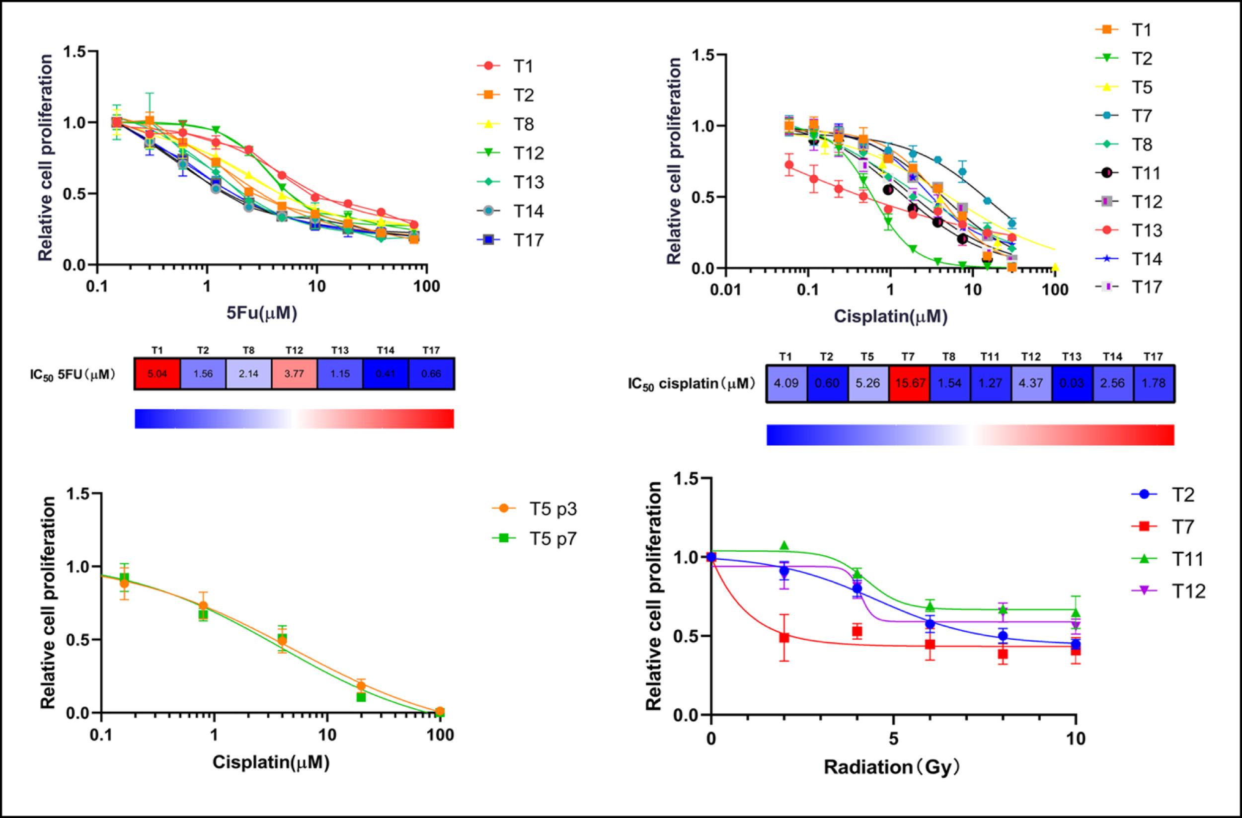 本项目组目前已经成功建立了肺、肠、舌、喉及头颈癌的类器官,并进行多种药物和辐射治疗敏感性分析。