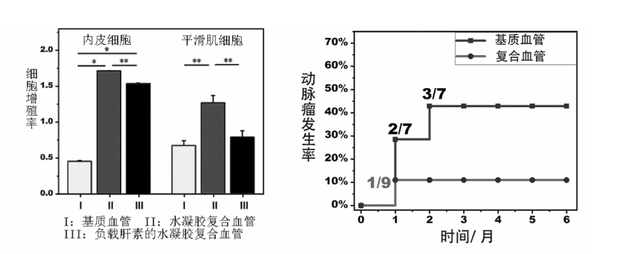 图1.左:本成果通过抑制平滑肌细胞增殖利于血管的体内再生