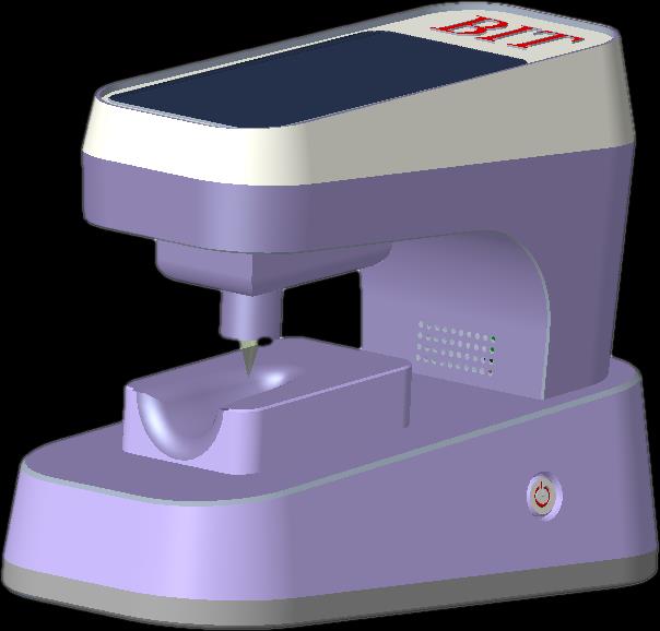 3、外观设计创新:自主设计一款便携式、小型化(长×宽×高="15×4×10cm),符合人体工学的无创血糖仪,用户单手即可快速完成血糖监测;