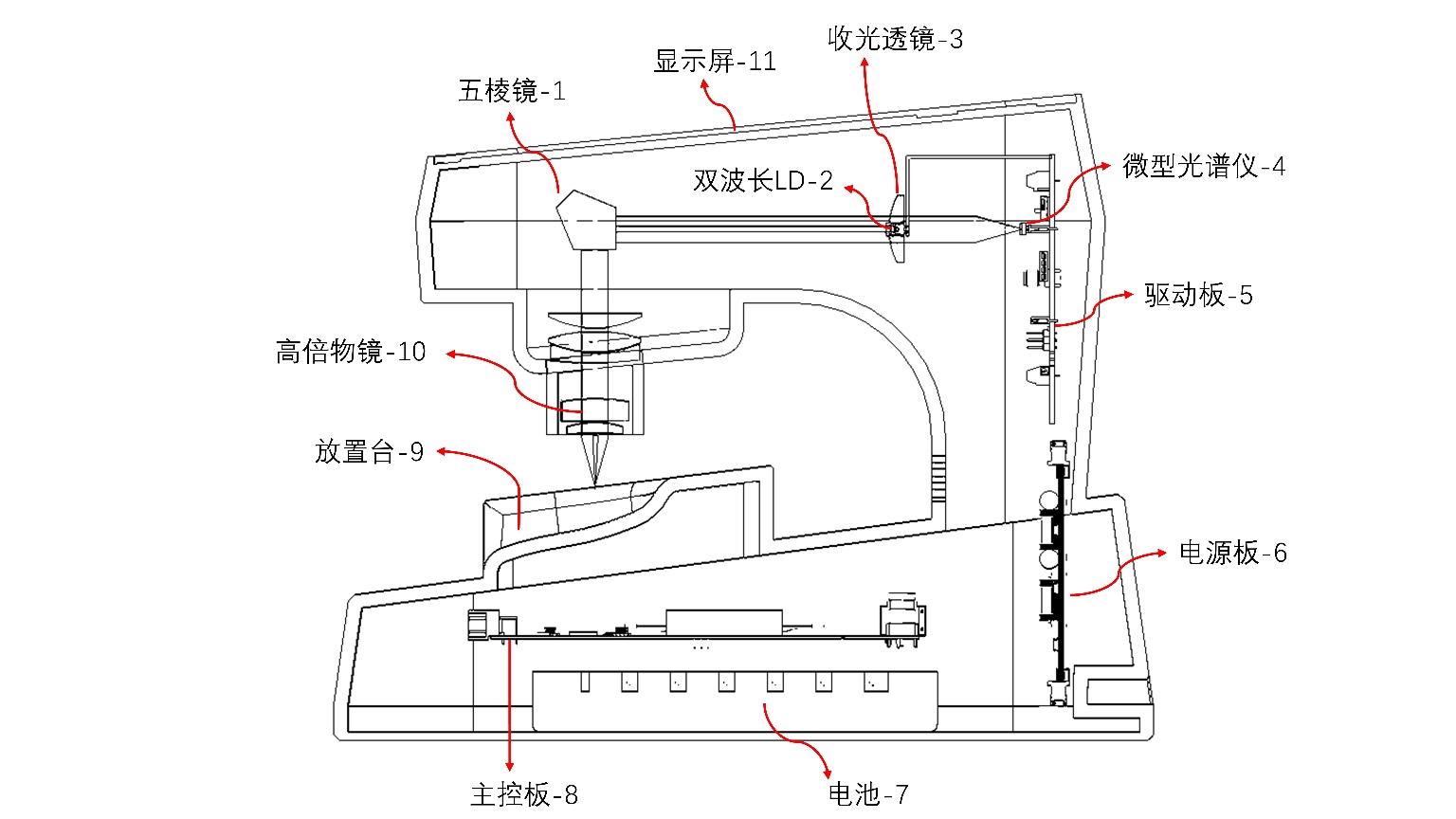 解决了常规拉曼无创血糖监测背景噪声影响大,监测准确度低等问题,首次创新性采用指甲上采集血糖拉曼信号,并利用双波长激发差分算法消除背景噪声,极大提升信号信噪比,实现个体病例一天血糖变化趋势监测。其中核心技术包括拉曼光谱差分算法和多重迭代反卷积算法进行血糖浓度预测,解决了利用光学方法实现无创监测血糖在低血糖浓度(4mmol/L)监测不准确的行业难题;