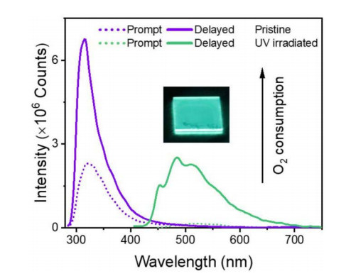 图3. 薄膜磷光材料的荧光发光光谱和磷光光谱