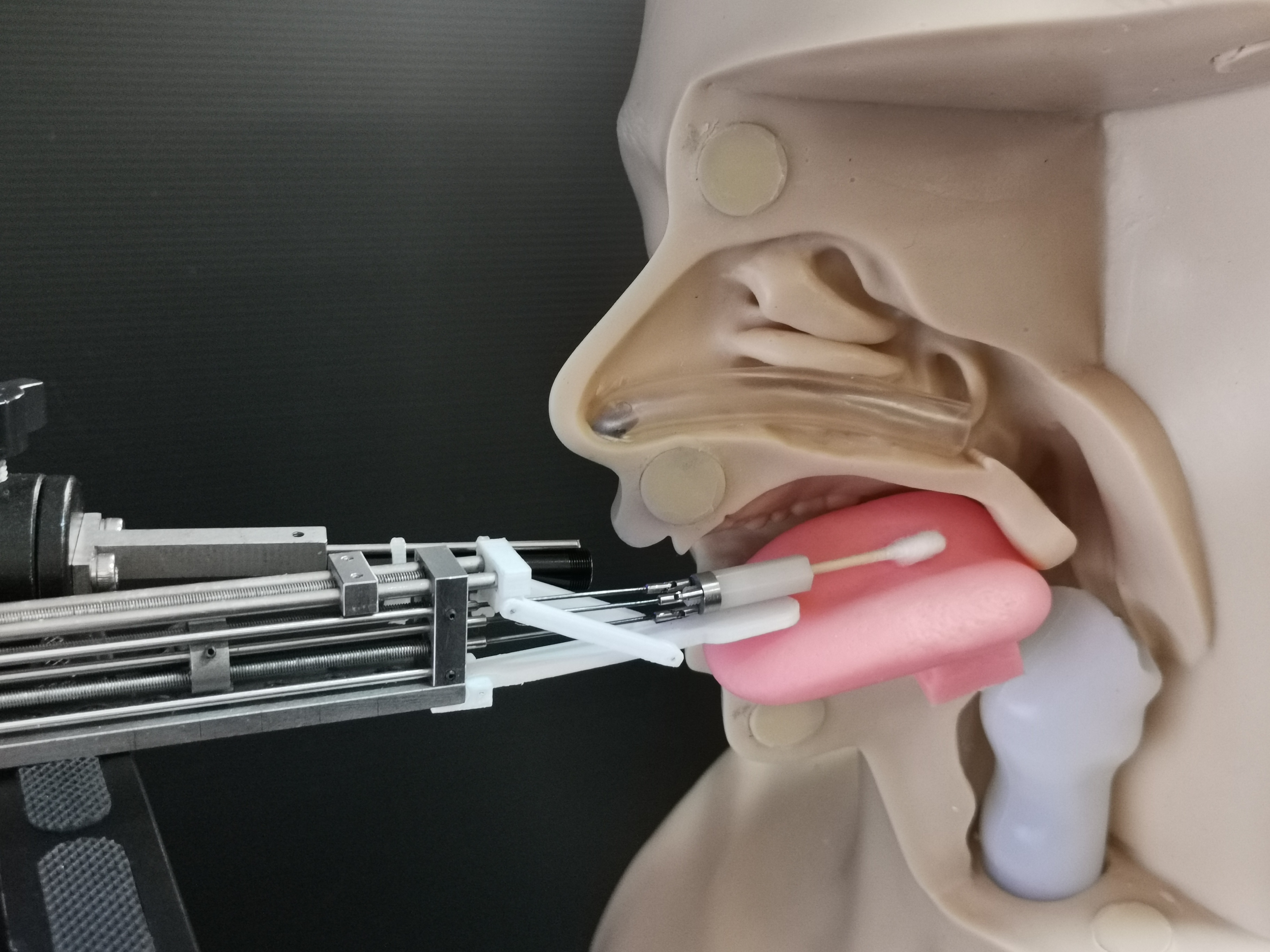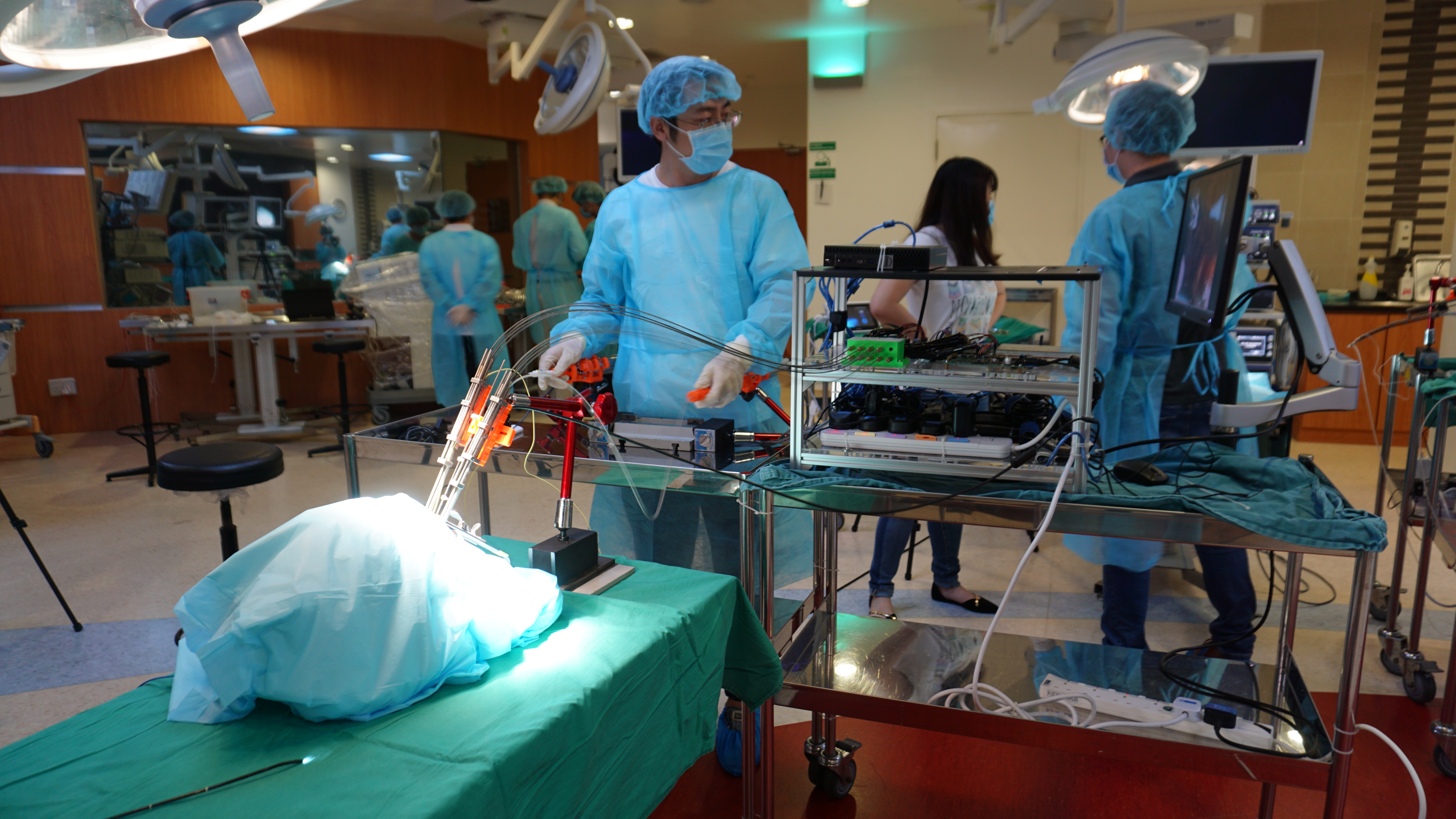 图1:基于刚柔耦合机构的喉部手术机器人尸体实验