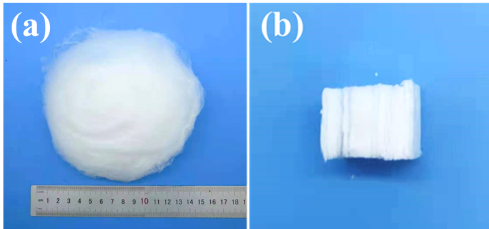 图1.纤维海绵的宏观及横截面形貌