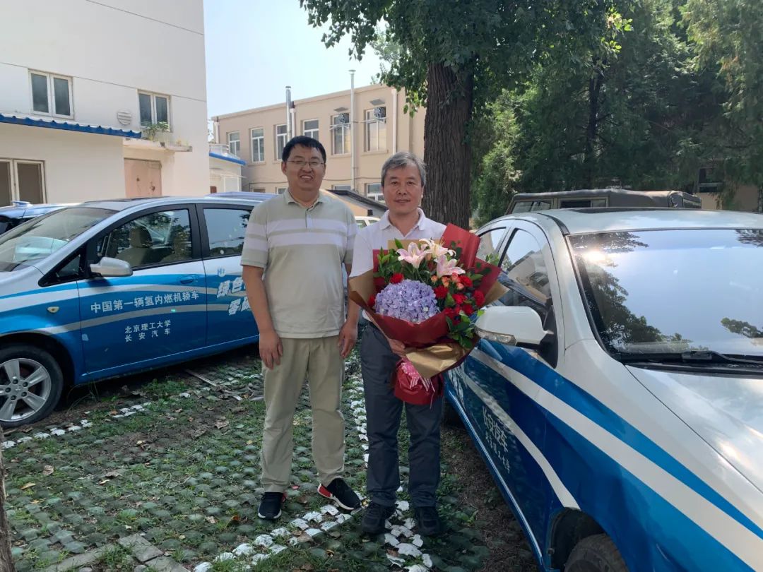 孙柏刚(右一)与中国第一辆氢内燃机轿车合影