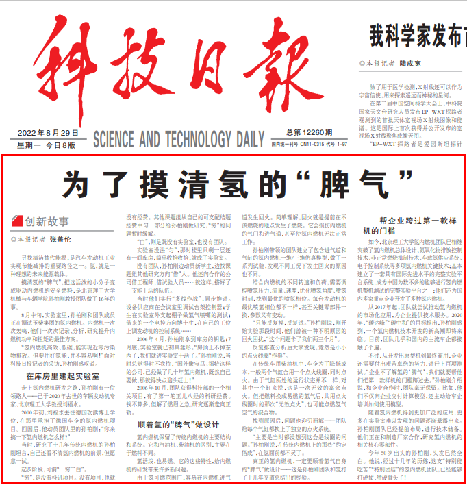 《科技日报》报道氢内燃机创新团队——顺着氢的“脾气”搞研究,成了!